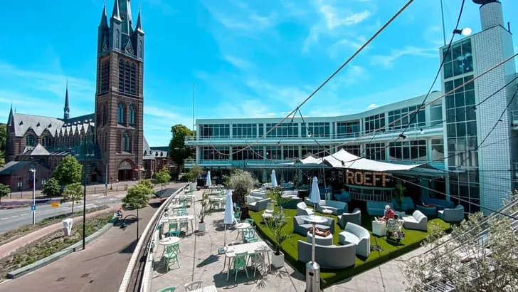Welcome to the jungle aan de Emmastraat! Op het ruime dakterras van Rijksmonument Gooiland (bouwjaar 1936) vind je rooftopbar Roeff, waar je van woensdag tot en met zondag terecht kunt voor cocktails en lekker eten.