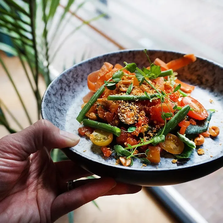 En hij voegde de daad bij het woord: in zijn restaurant serveert hij wereldgerechten die met een paar tweaks (crispy lam met komkommersalade, rode ui en saffraanmayo light, anyone?) prima in een verantwoord dieet passen, bijvoorbeeld met behulp van een andere saus of een kleinere portie, zoals deze Som Tam Thai. Op de 'afslankkaart' staan zo'n tien gerechten en je zou willen dat elk restaurant deze optie had, toch?