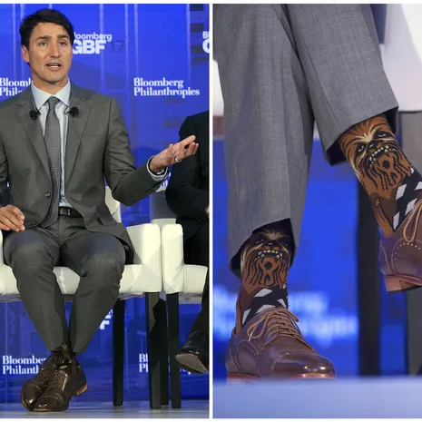Justin Trudeau was aanwezig bij het Global Business Forum in New York, waar hij nota bene naast onze eigen premier Mark Rutte zat, ook al geen oncharmant type. En toch, het verschil was reuze en dat zat ‘m in de sokken. Onder je suit & tie sokken dragen van Star Wars’ Chewbacca, hoe cool (excusez het jeugdige woord) ben je dan!