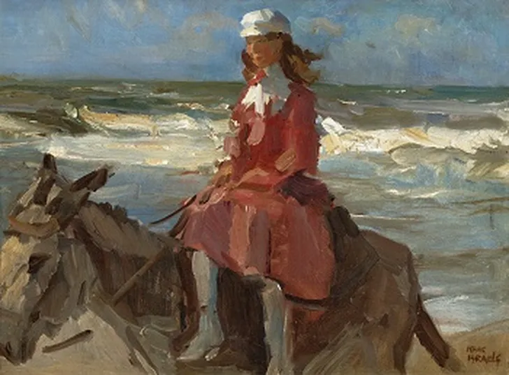 Kunsthandel Studio 2000 Isaac Israëls Eze lrijden op het strand in Scheveningen c.a.1900 olieverf op doek 45x60cm