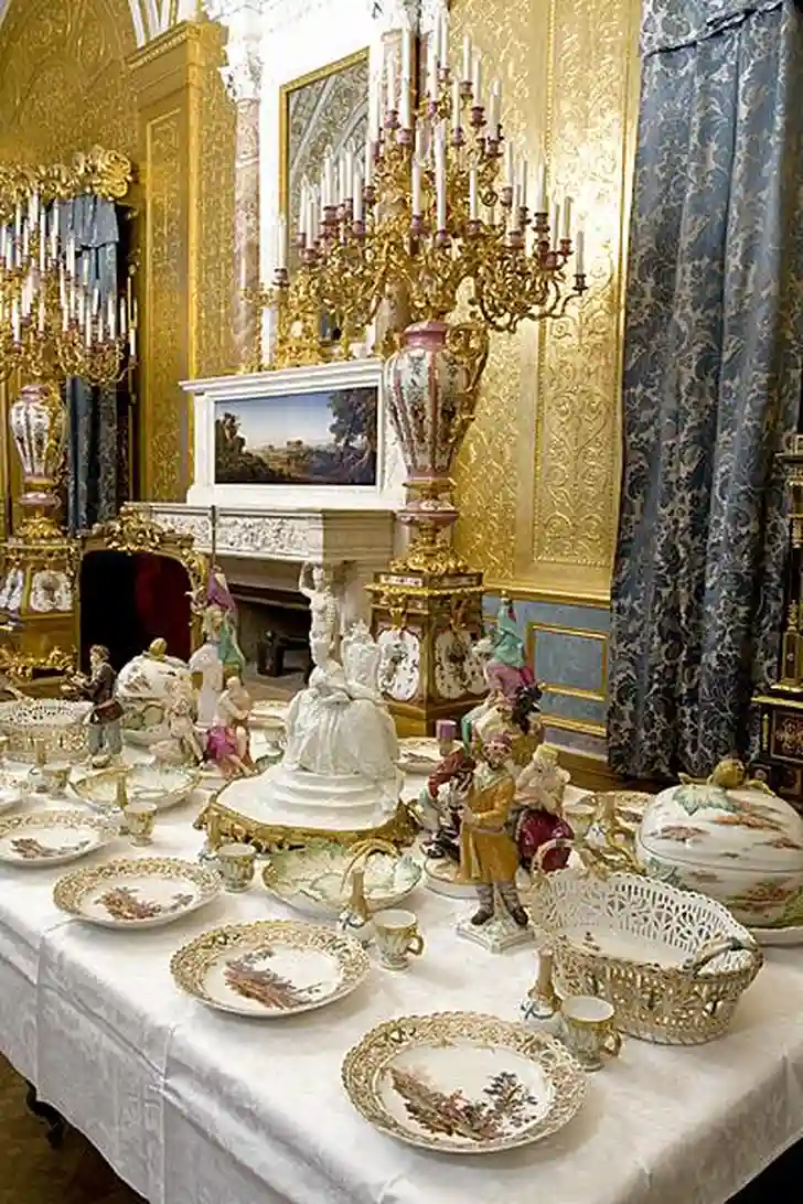 Alsof u bij de tsaar en tsarina zelf aanzit voor het banket... Zo vorstelijk is de sfeer op Dining with the Tsars. Breekbare schoonheid uit de Hermitage, de fraaie lustrumtentoonstelling in museum de Hermitage in Amsterdam. Op vrijdag 30 januari 2015 waant u zich er op bezoek aan het Russische hof. Dining with the Tsars vertelt het verhaal van de exorbitante achttiende-eeuwse bal- en banketcultuur, die onder Catharina de Grote tot een hoogtepunt kwam. Per banket werden honderden gerechten bereid voor duizenden balbezoekers. Naast de schitterende serviezen uit St. Petersburg, waaronder veel unieke stukken, kunt u rijk gedetailleerd zilverwerk en fraaie kandelaars van dichtbij bekijken.