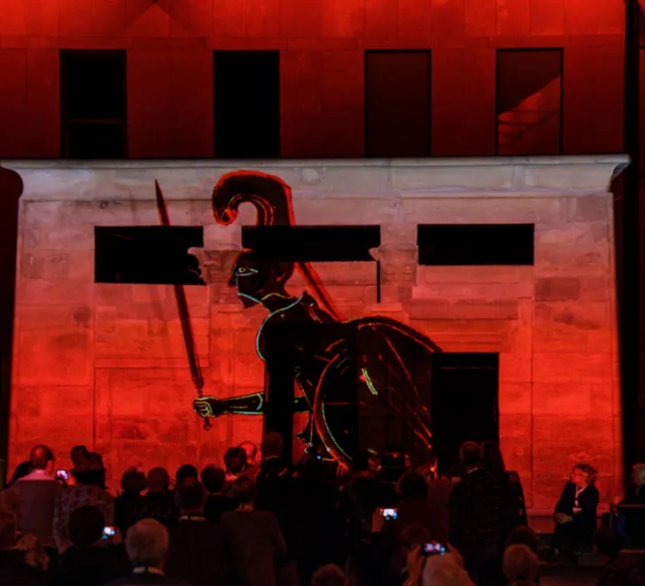 De tempel zelf lijkt tijdens de lichtshow in gekleurde lichtstralen uiteen te spatten om daarna weer steen voor steen te worden opgebouwd. De lichtshow is een ware belevenis, duurt vier minuten en is dagelijks te zien om 11.30 uur.