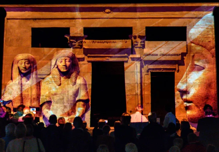 De indrukwekkende tempel uit Taffeh is een geschenk van Egypte aan de Nederlandse bevolking, als dank voor de steun bij een UNESCO-reddingsoperatie in de jaren zestig van de vorige eeuw. Buiten de lichtshow om kun je hem aan alle kanten bekijken, hij was mogelijk gewijd aan Isis, een van de belangrijkste godinnen in de Egyptische mythologie.