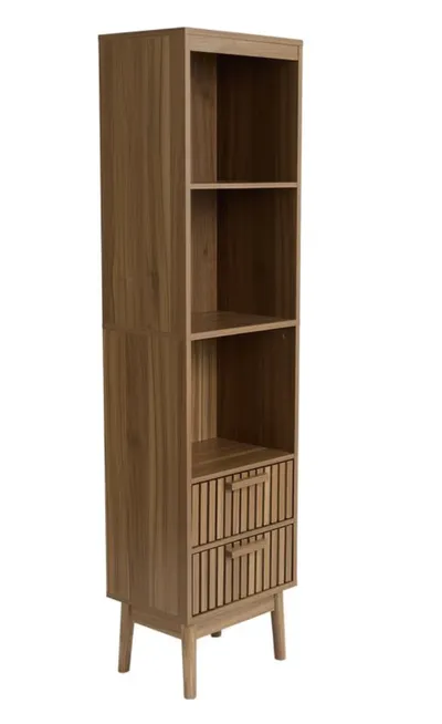 De kast is compact genoeg om in een kleinere badkamer te passen, maar biedt door de slimme indeling verrassend veel opbergruimte. De combinatie van de open schappen en de dichte lades zorgt voor een speels maar rustig effect. Het product heeft een bamboe/ houtlook en kan goed tegen een vochtige ruimte. Bovendien geeft hij die gewilde 'Bali-spa' vibe.