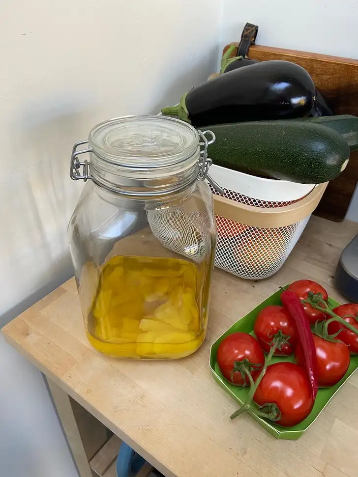 Gelukkig zit het met die limoncello wel goed bij ons thuis, sinds ik in Italië leerde dat iedereen daar zijn eigen digestieven maakt en dat het ook nog eens hartstikke gemakkelijk is. Mijn eerste versie maakte ik een paar jaar geleden met enorme citroenen die in de kofferbak vanuit Italië mee naar huis gingen. Daarna bleek het eigenlijk net zo goed te gaan met supermarktcitroenen.