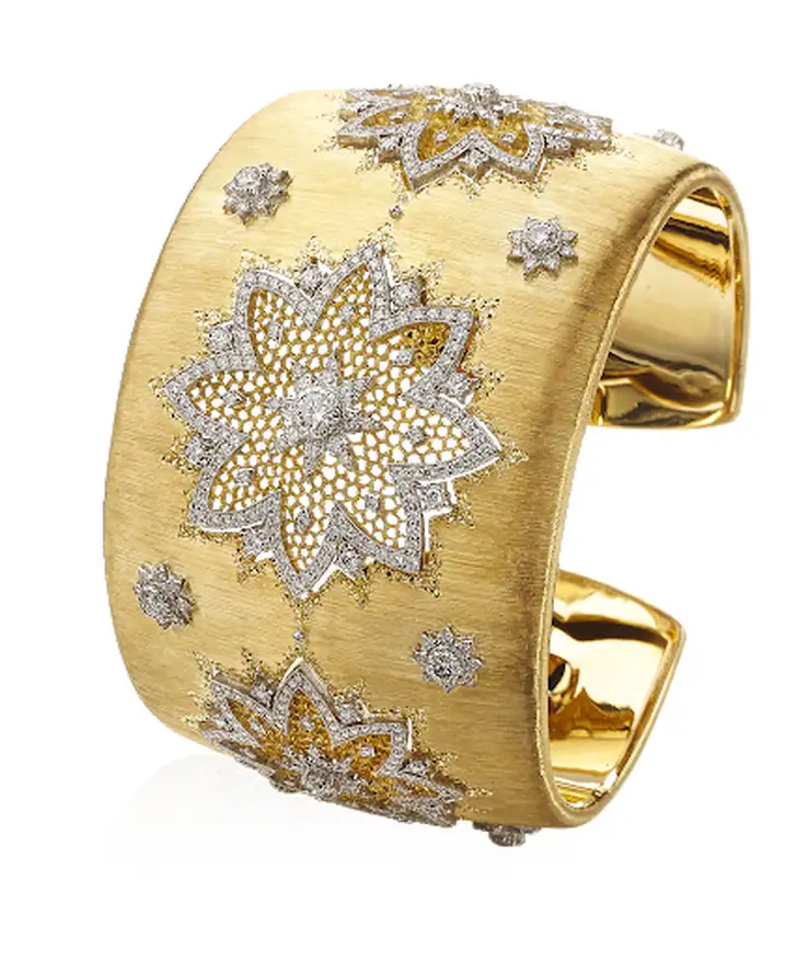 Buccellati is een Italiaans familiebedrijf waarvan inmiddels de vierde generatie aan het hoofd staat. De sieraden kenmerken zich door de speciale manier van graveren, werken met filigrain en stenen zetten, die teruggaat op de Italiaanse Renaissance.