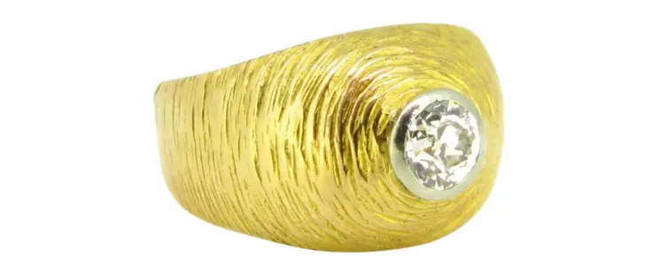 De naam 'gipsy ring' is een mysterie, want de ringen hebben niets te maken met de Roma. De zetting is een eeuwenoude techniek die in de Victoriaanse tijd populair werd, verrassend genoeg eerst onder mannen, met dank aan de robuuste vorm.