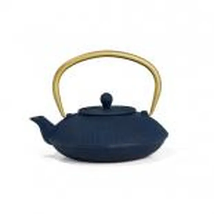 De gietijzeren Linhai theepot is verkrijgbaar in de kleuren dark blue, dark purple en marsala en heeft een mat gouden handgreep, geëmailleerde binnenzijde en rvs theefilter. Bredemeijer Linhai € 37,95 (1,1l) www.bredemeijer.nl