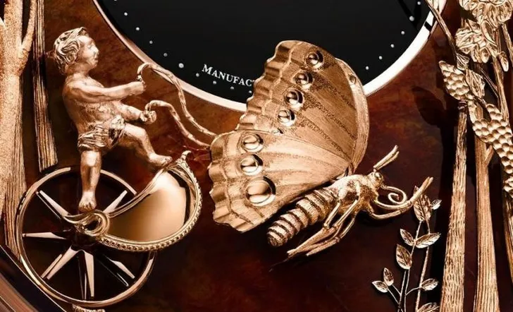 Voor de liefhebbers van bijzondere klokjes: de Jaquet Droz Loving Butterfly Automation 2020, met een extreem zeldzame wijzerplaat van 'Chinchilla Red'.