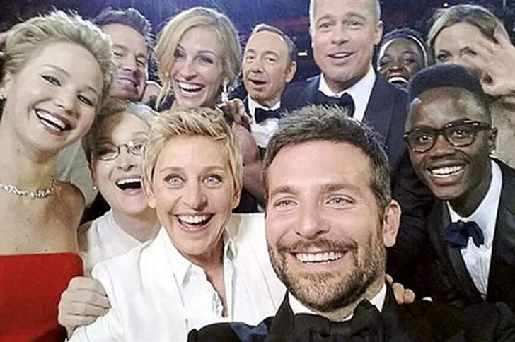 Hier het origineel van Ellen met bekende gezichten als Bradley Cooper, Angelina Jolie, Brad Pitt (ja, zolang is dat al geleden), Julia Roberts en Meryl Streep.