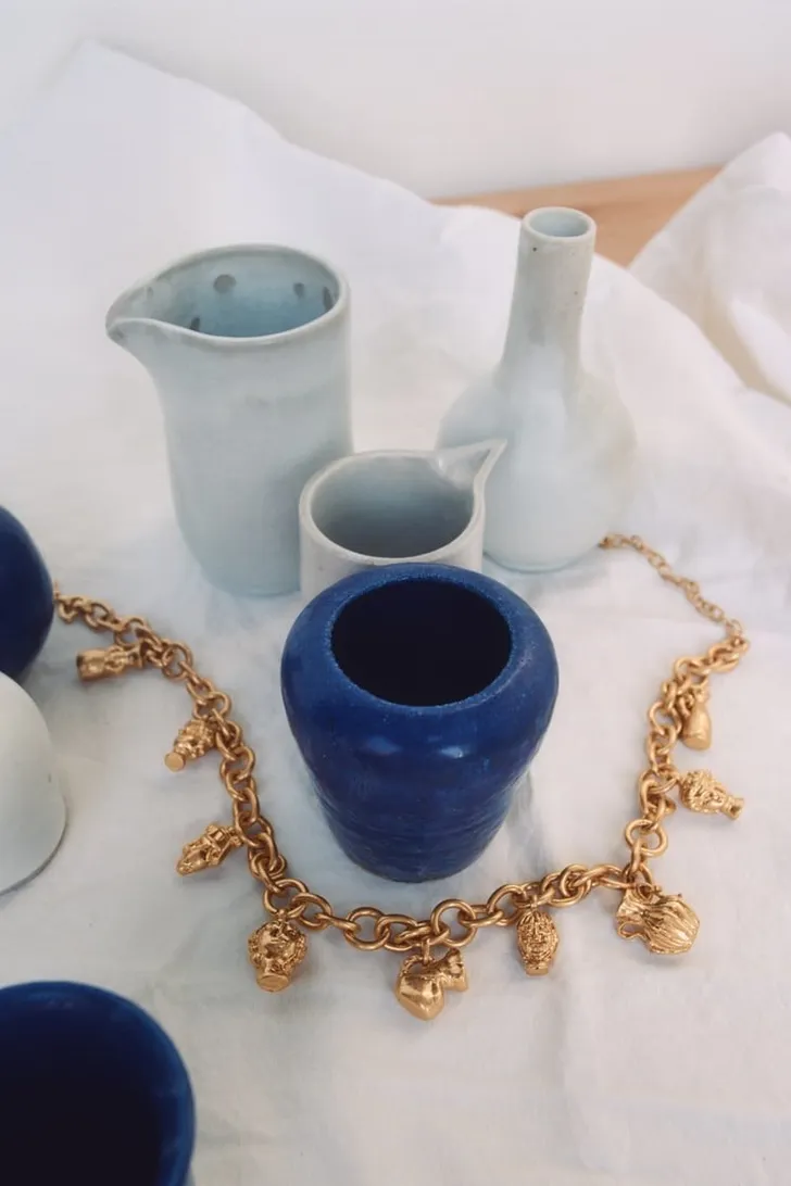 Mocht het je budget te boven gaan, dan heeft Zara deze ketting met Griekse kruikjes in geel goud voor € 18.