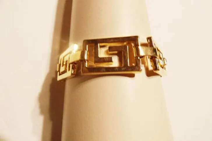 En deze brede goudkleurige meander armband is € 20