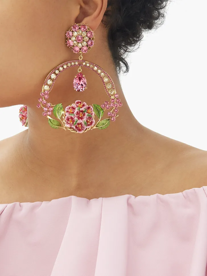 Grote Dolce & Gabbana oorhangers met email en kristallen (Matches Fashion € 1450)