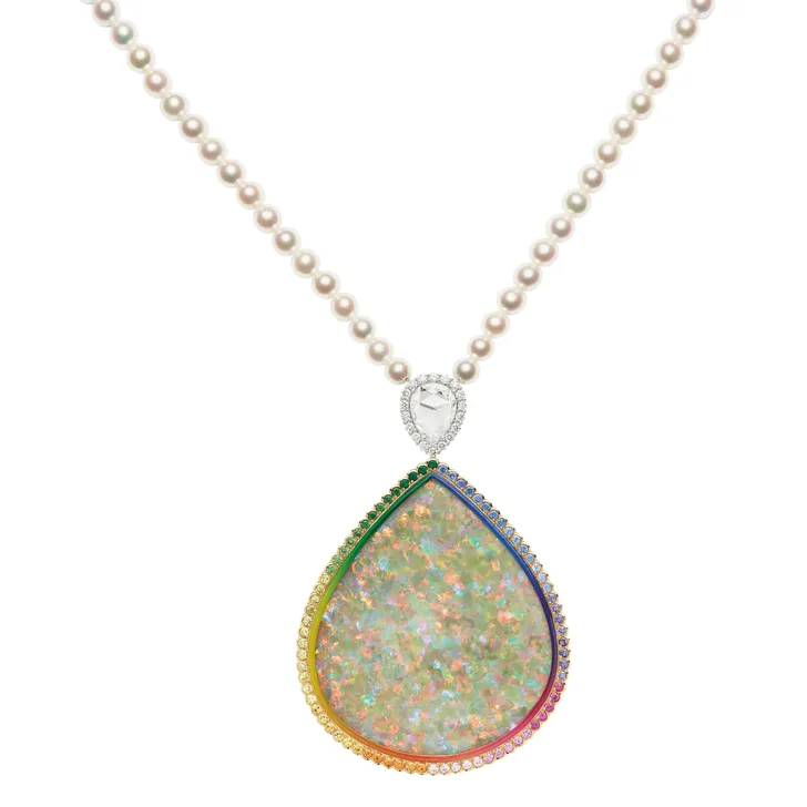 Dior et Moi hanger in geel en roze goud, met diamant, zwarte opaal, kweekparel, saffier, granaat, peridot en smaragd.