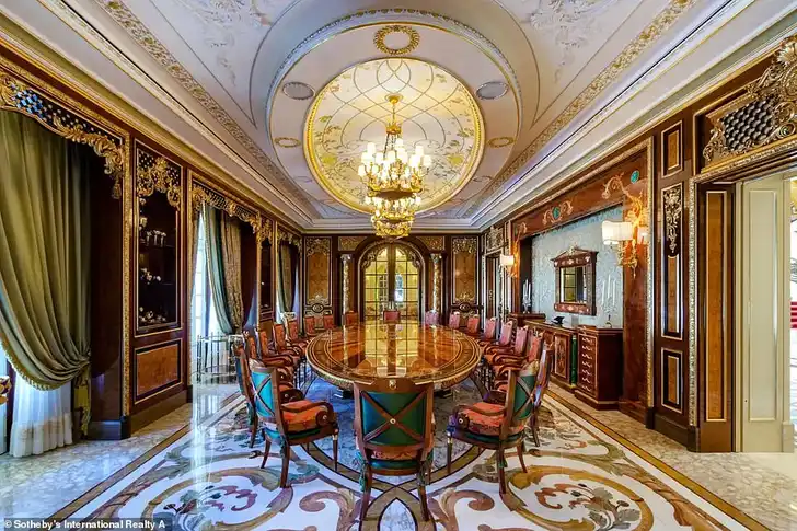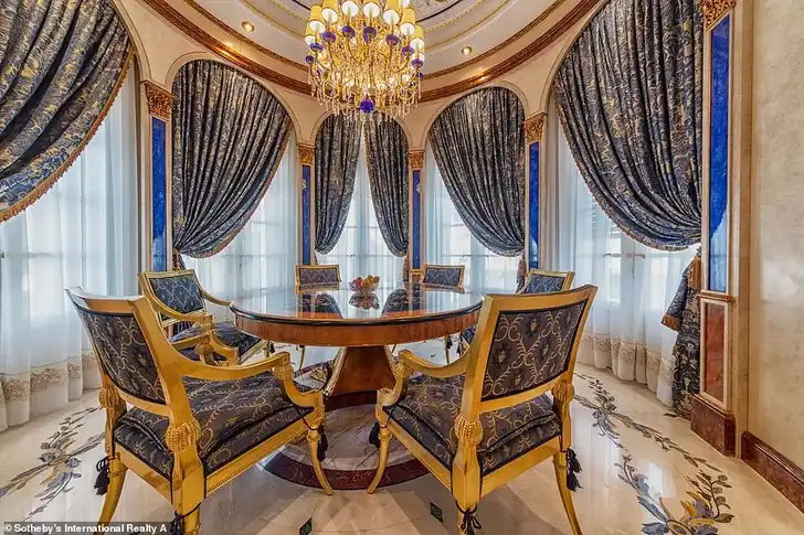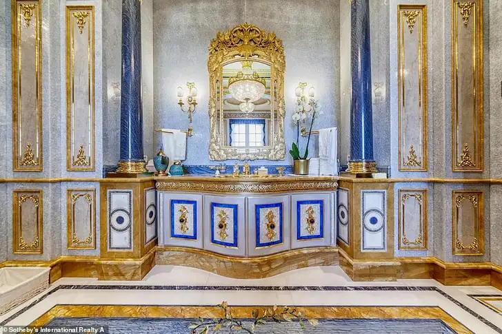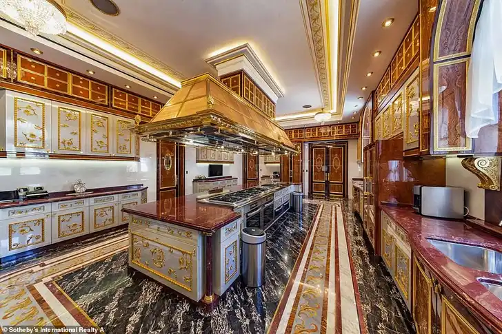 De keuken zou van Versace kunnen zijn, afgaand op het decor. En ja, dat is inderdaad een afzuigkap van goud.