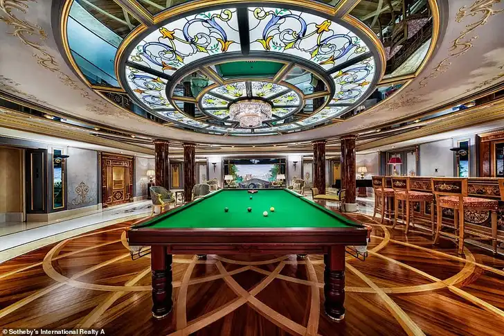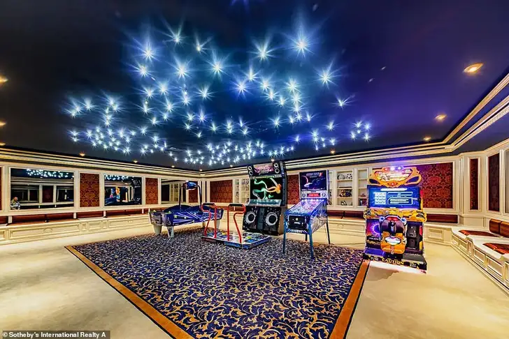 … een huisbioscoop, een gameroom en naast de keuken een pantry voor de butler, om snel wat snacks te kunnen serveren. Het is verder van alle gemakken voorzien, waaronder een lift.