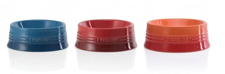 Le Creuset is bekend van de wereldberoemde vrolijk gekleurde (en zeer prijzige) gietijzeren pannen. Het merk breidt nu uit met spullen-op-stand voor je huisdier.