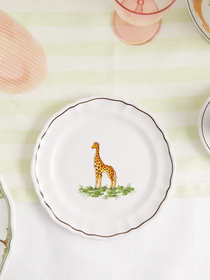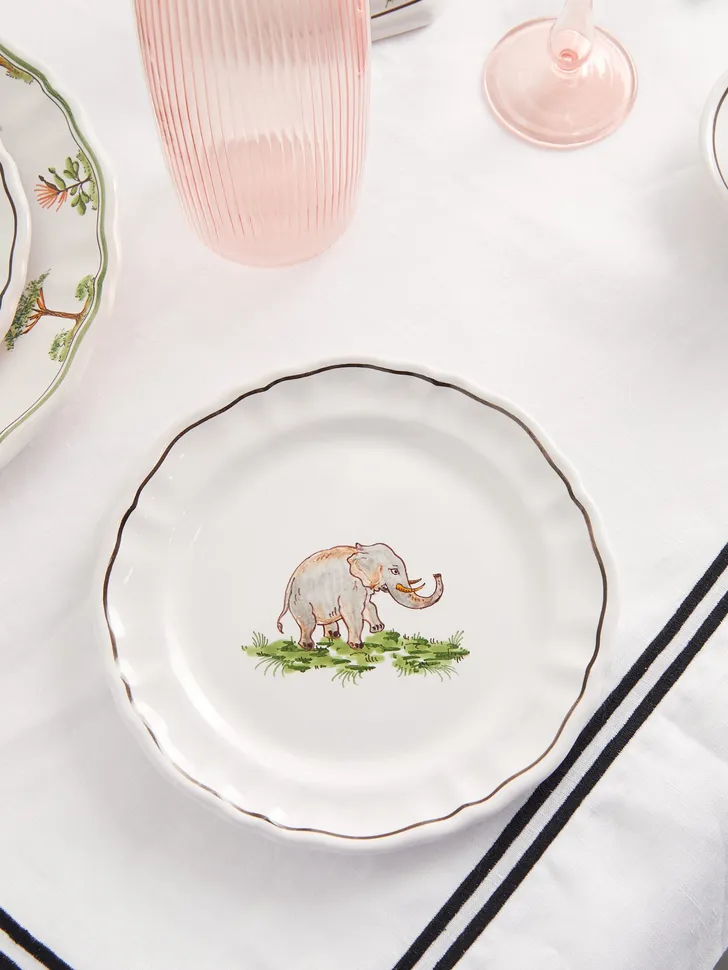 En vanwaar een servies? "Koken is een grote vreugde in het leven van mijn man Olivier," zegt ze. "Dus mijn bijdrage aan samen eten is altijd tafeldekken geweest. Ik leef me graag helemaal uit met kerst, Thanksgiving en Pasen. 'Safari in Beverly Hills' is heel geschikt om mee te dekken in het voorjaar en de zomer."