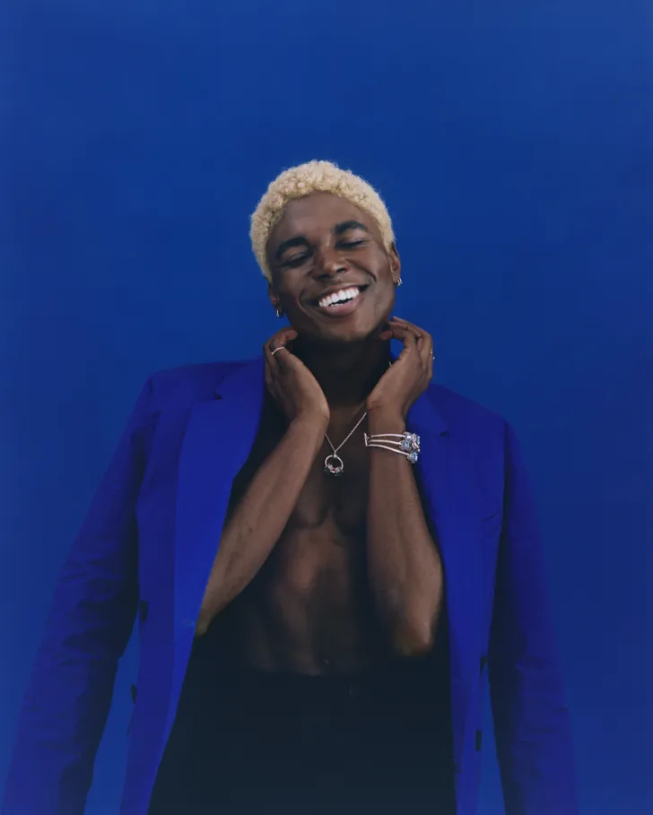 De kleur blauw geeft mij altijd het gevoel dat ik ’thuis’ ben. Het is gek hoe zo'n koele tint mij een warm gevoel geven. Blauw vertelt je te ademen, om zo uitgesproken of ingetogen te zijn als je wilt. Voor mij is het hoe ik zachtheid kan laten zien als zwarte jongen."