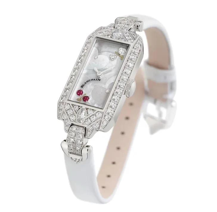 Dit heeft dezelfde vorm als het horloge van Monroe en er zijn slechts veertien exemplaren van gemaakt, allemaal met 84 diamantjes. Op de wijzerplaat hartjes van parelmoer en vlinders van diamant en robijn.