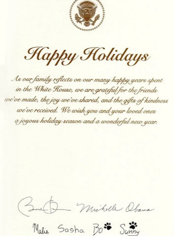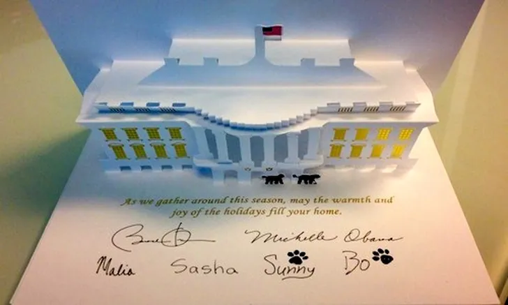 De Obama's hebben officieel hun laatste Witte Huis-kerstkaart verzonden. Het is traditie voor de president van Amerika om een kaart te sturen naar vrienden, politieke aanhangers en de media. En wij mogen er ook van meegenieten, omdat ontvangers dit collector's item hebben gedeeld op social media.
