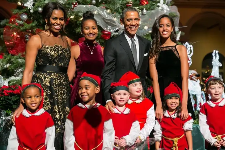 Bekijk hoeveel dochters Sacha en Malia zijn veranderd sinds 2014 - zie de foto met de kerstelfjes - het jaar dat de meiden poseerden met hun ouders en zes kleine geluksvogels tijdens hun 'Christmas in Washington'-special.