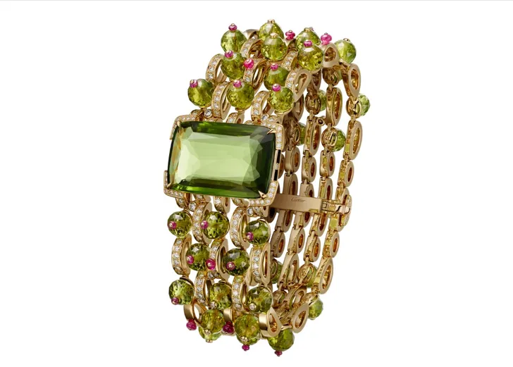 Armband van geel goud, peridot en robijnen (Cartier, prijs op aanvraag)