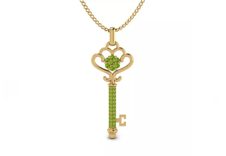Gouden sleutel Gina ingelegd met peridot (Glamira € 270)