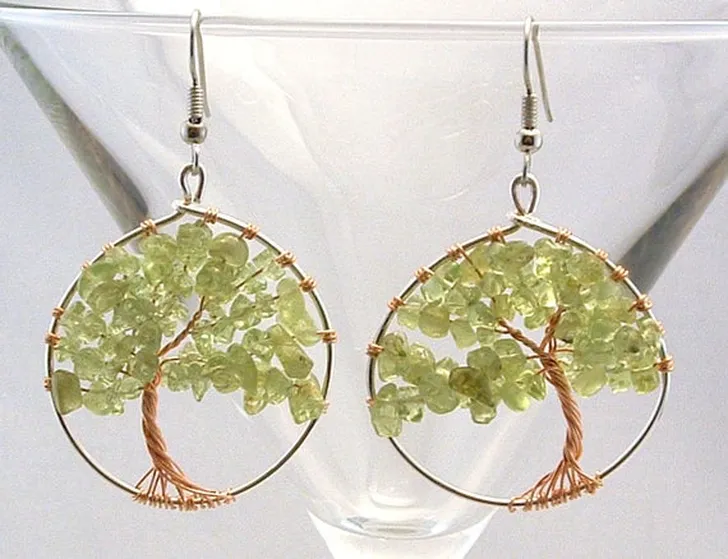 Levensboom oorhangers met peridot (Wrapped to go € 116)