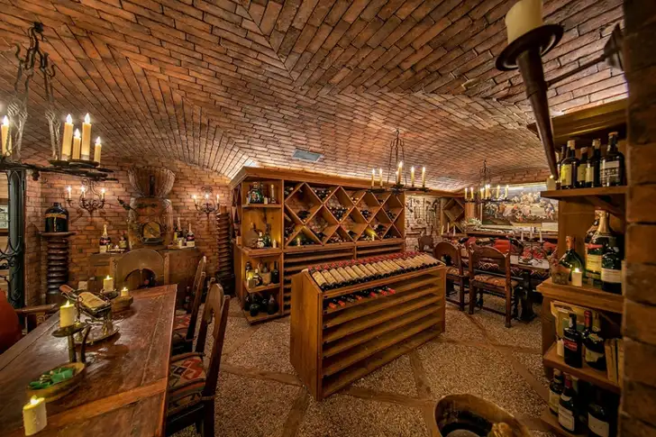 Onder het huis een indrukwekkende wijnkelder, verder zijn er twee kantoren en een gym met een eigen badkamer.