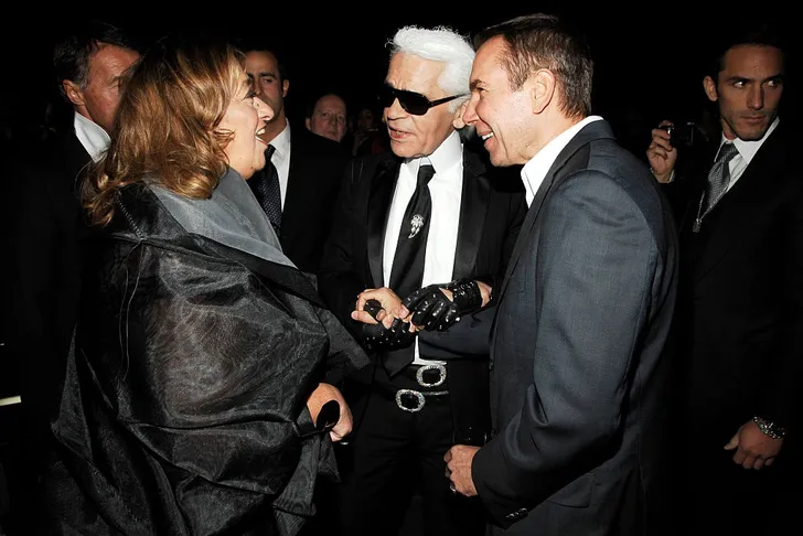 Ook unieke maatpakken van Dior en kunstwerken van Jeff Koons (hier rechts met Karl in 2008), Marc Newson en Takashi Murakami staan op de lijst. De prijzen beginnen bij 5000 euro en kunnen oplopen tot zo’n 120.000 euro.
