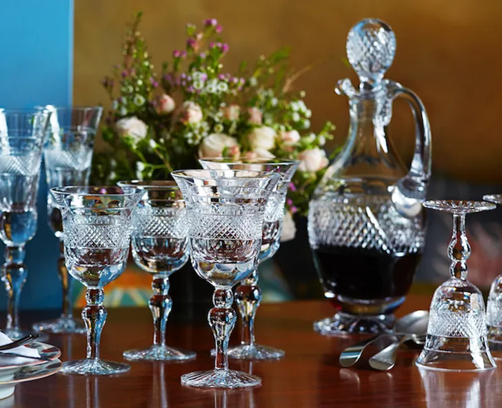 Al het geslepen glaswerk is zeer in trek, maar het Britse in de Regency-stijl slaat echt alles, vanwege de unieke manier waarop dit het licht verspreidt en een tafel extra glans geeft.