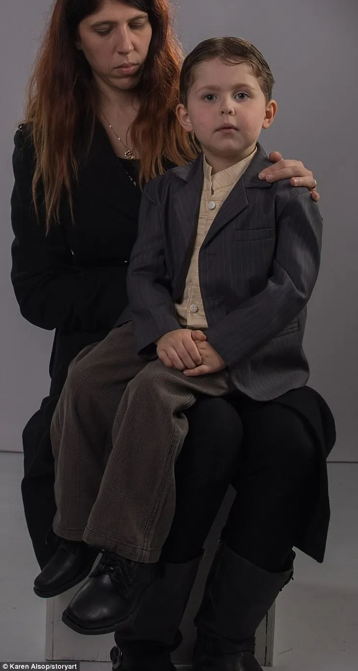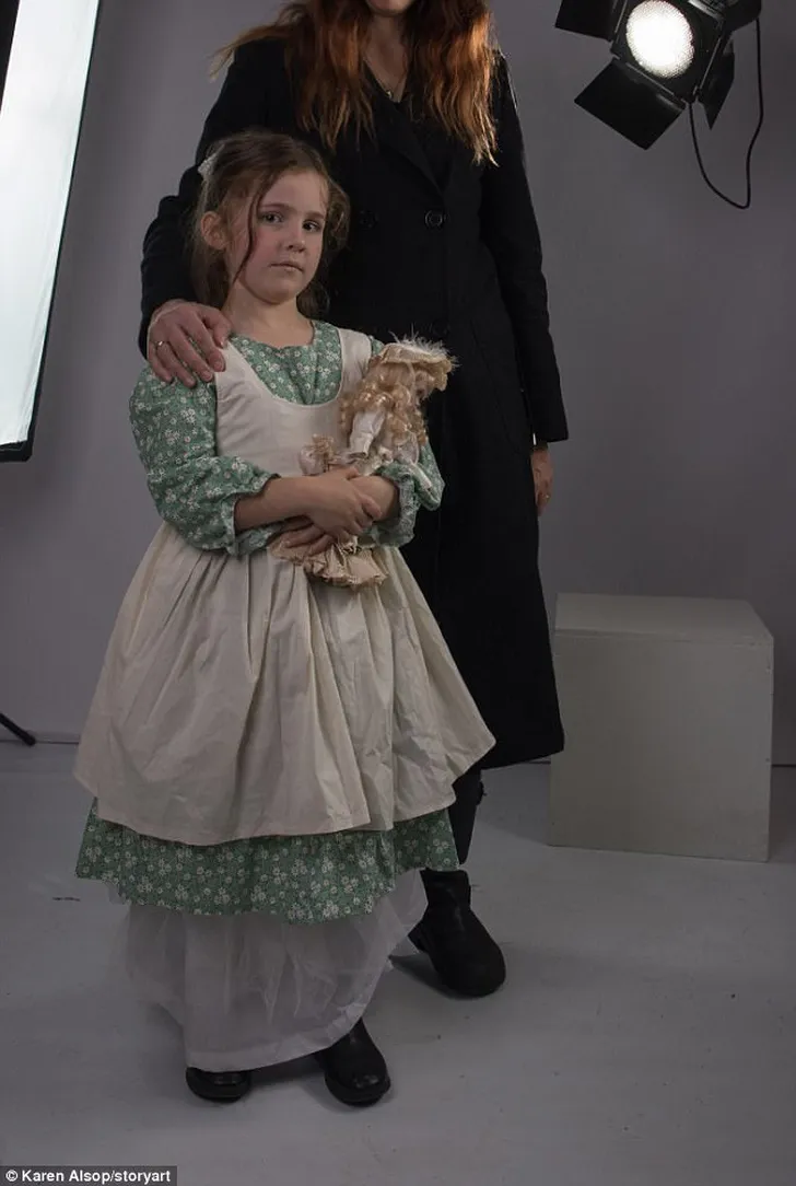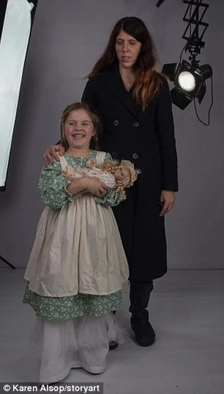 "Dit is het moment waarop mijn kinderen hun over- over- over- overgrootmoeder ontmoetten", vertelde Karen Alsop aan de Daily Mail Australia. "Mijn moeder ontdekte de oude foto in mijn opa's spullen, en langzaamaan ontstond het 'tijdreis idee' in mijn hoofd. Ik besloot kleding uit die tijd te kopen én om mijn kinderen model te laten staan."