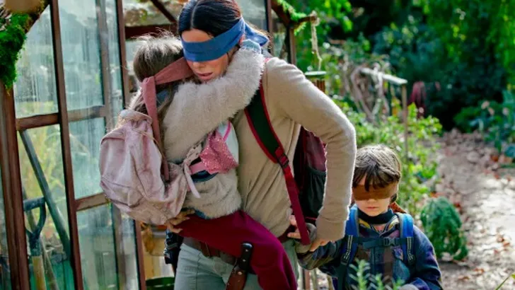 Bird Box gaat namelijk over moeder Malorie (gespeeld door Sandra Bullock) die samen met haar twee kinderen probeert te ontsnappen aan een onzichtbare entiteit die mensen tot zelfmoord aanzet.