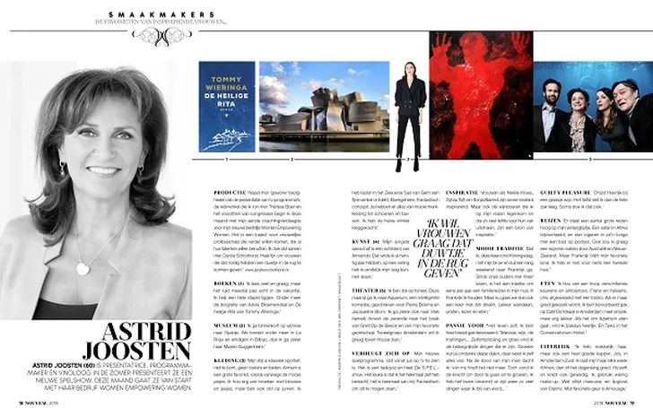 Astrid Joosten (60) vertelt over haar guilty pleasures en geeft theater-, museum- en boekentips. Daarnaast onthult ze hoe ze zich zo fantastisch kleedt en waar ze passie voor heeft.