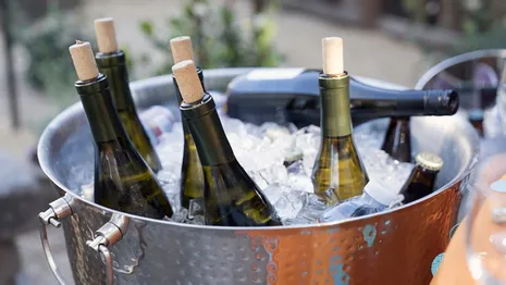 Het zout zorgt ervoor dat de kou sneller vrij komt. Fles wit of rosé erin en na tien, vijftien minuten kunnen jullie aan de borrel. Proost!
