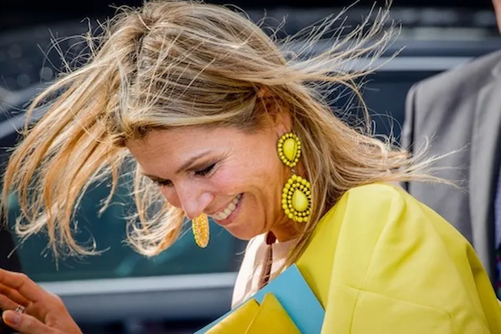 Toen de koningin aanwezig was bij het congres Gender & Gezondheid van WOMEN Inc. in de Rijtuigenloods droeg ze geen peperdure hangers, maar 'gewoon' een paar van van Supertrash in knalgeel.