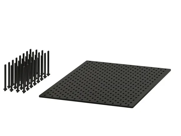 Het concept is simpel: je legt het geperforeerde paneel op de bodem van je lade. Vervolgens draai je de 24 bijgeleverde pinnen (of staven) in de gaten, precies strak om jouw spullen heen.
