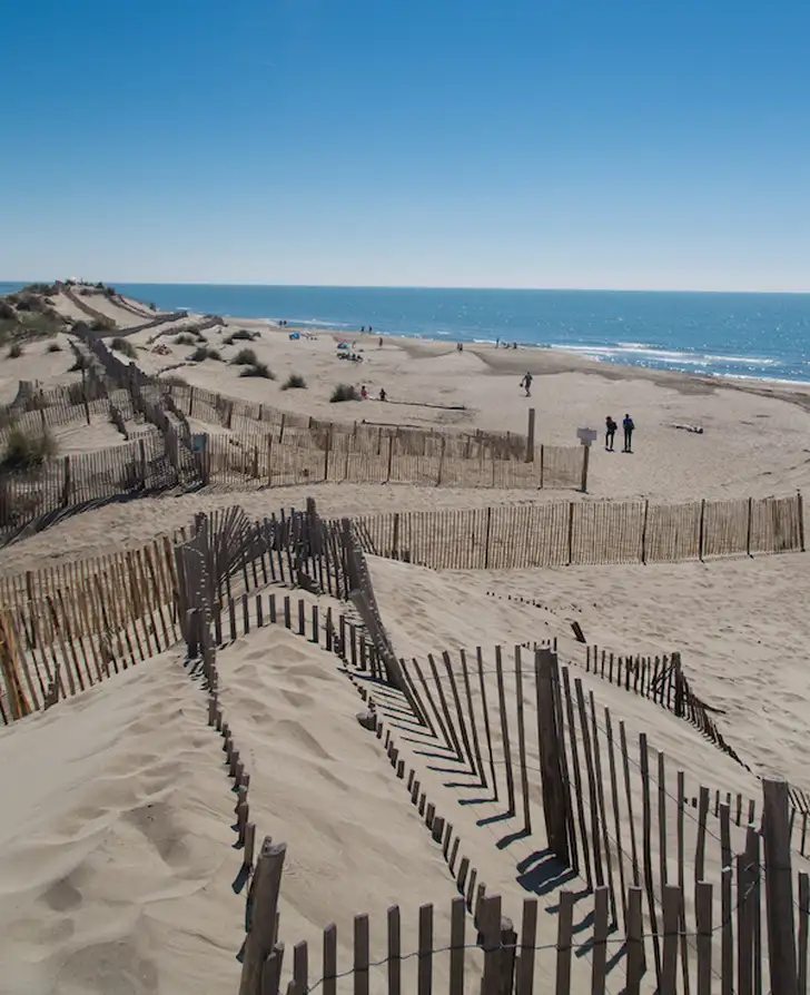 Plage de L'Espiguette in Montpellier is in trek bij kitesurfers, zodat er altijd wat te zien is als je met je voeten op het warme zand staat. Het grenst aan een natuurreservaat en het is vrij uniek dat een stad met een middeleeuws hart relatief dichtbij een een mooi strand heeft - je denkt niet aan Montpellier als kustplaats.
