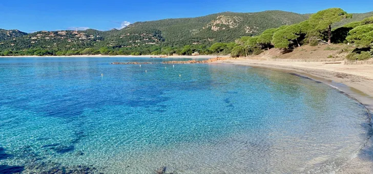 Plage de Porticcio ligt negen km van Ajaccio (Corsica) en is een stuk rustiger dan het strand dat dichter bij de stad ligt.