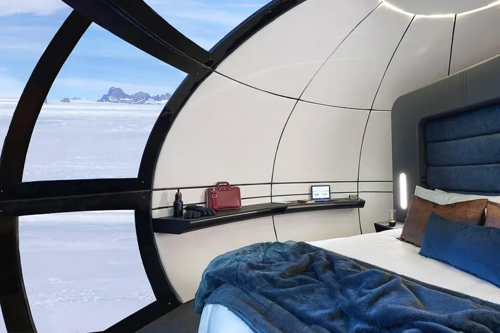 Reisorganisator White Desert heeft er zes Sky Pods geplaatst met panoramaramen om van het poollandschap te genieten van onder je dekentje.