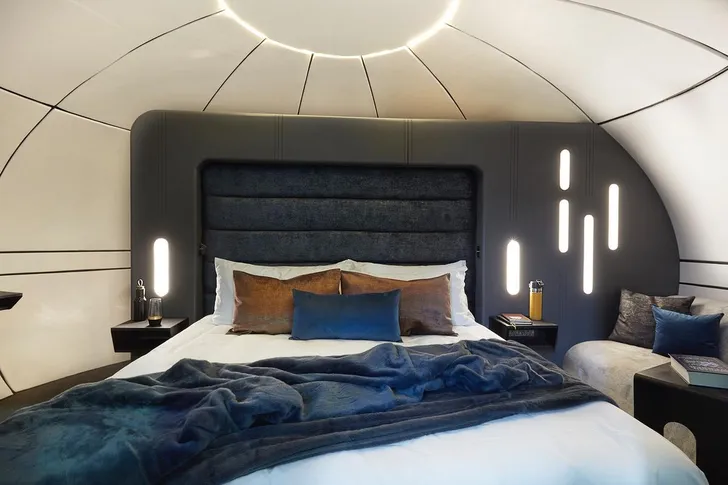 De pods zijn gemaakt van glasvezel en dienen als verwarmde slaapkamers. Ze zijn luxe ingericht voor twee personen; het geheel heeft absoluut space vibes.