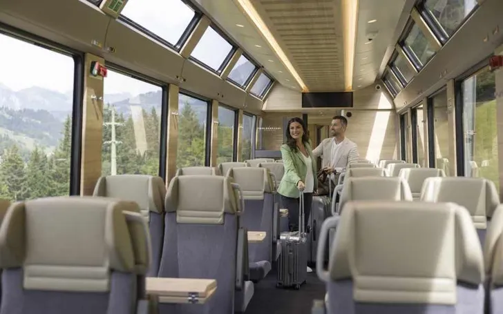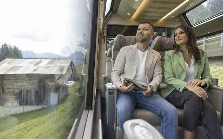 Het is een moderne trein met drie klassen: de 1e en 2de klasse zijn allebei heel comfortabel, het enige nadeel is dat je iets minder privacy hebt. In Prestige (maximaal 28 passagiers) zit je in verwarmbare fauteuils en 40 cm hoger, zodat je nog meer wordt ondergedompeld in het landschap.
