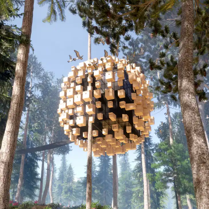 Het nieuwe 'vogelnest' is bedoeld als hulpmiddel om de vogelpopulatie in Zweden op peil te houden en de natuurlijke biodiversiteit in stand te houden.
