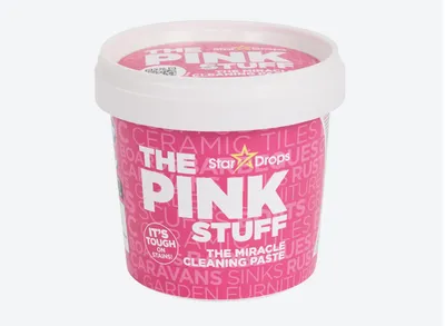 The Pink Stuff van het Britse merk Stardrops is eigenlijk een ouderwetse poetspasta in een modern jasje. De felroze substantie bevat fijne microdeeltjes van kwarts. Die werken als een heel mild schuurmiddel.