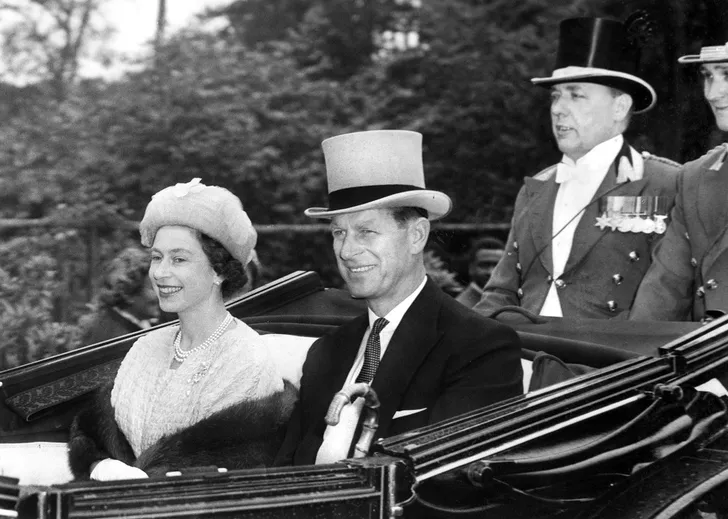Koningin Elizabeth en prins Philip op weg naar Royal Ascot, in 1963