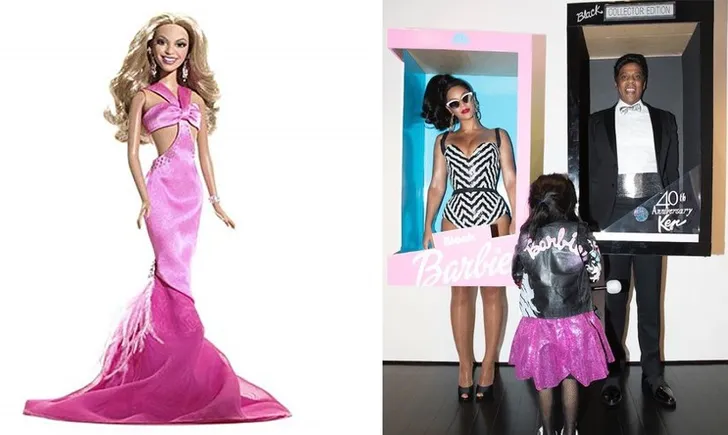 Over de gelijkenis van Beyoncé Barbie valt te twisten, maar Bey is zo dol op Barbie dat je er haar niet over hoort. Ze ging zelfs met Jay-Z en dochter Blue Ivy als Barbiepoppen naar een Halloweenfeest.