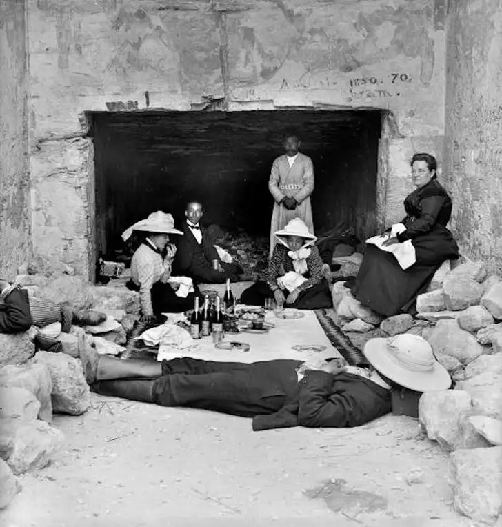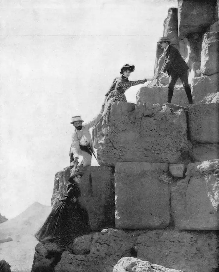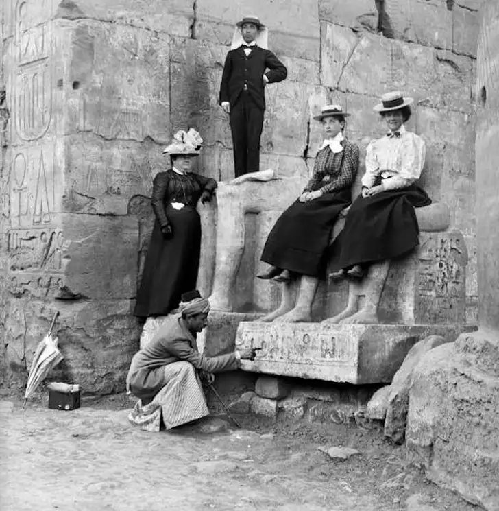 Onder meer de beroemde piramides van Gizeh werden rond 1900 al druk bezocht. Misschien deden ze dat niet met het meeste respect voor de cultuur, maar het leverde wel een aantal fantastische vintage beelden op: