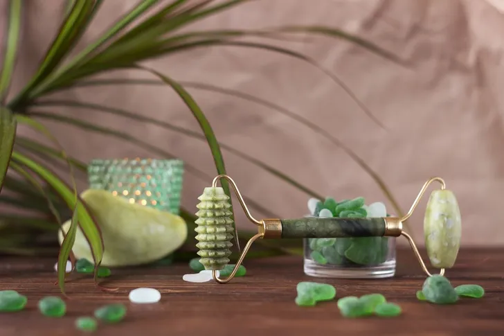 Een jade- of rozenkwarts roller lijkt een malligheidje, tot ie in de badkamer ligt en hij toch wel erg lekker is om even mee over de lijntjes te gaan. Circa 17 euro.