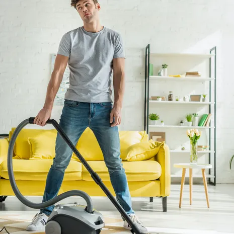 Him: Don’t step there! There’s mess on the floor! *starts cleaning*
